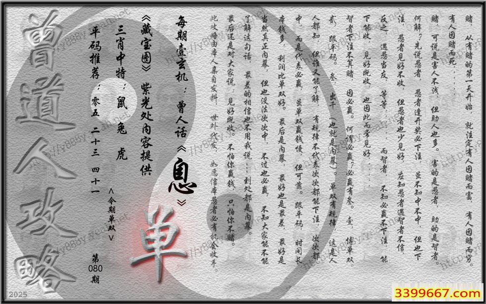 080期藏寶圖 新:真诚驭鹤乘鸾去 老:笑拍洪崖咏新作 禁:蛇 禁:6尾 玄機字:《息》