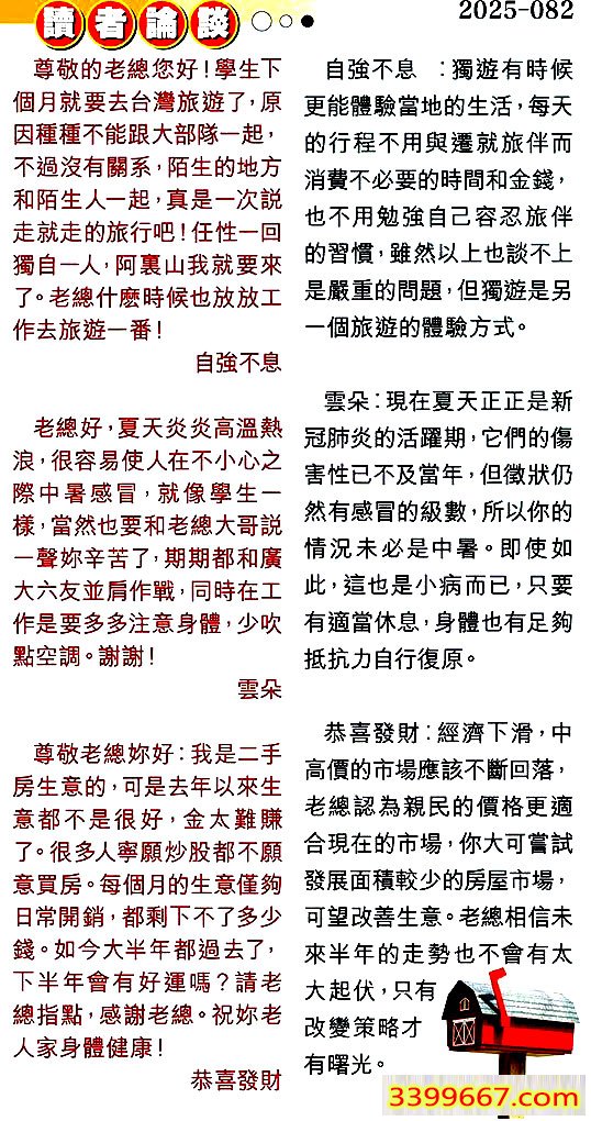 082期:彩民推荐〖貼信讀者論壇〗