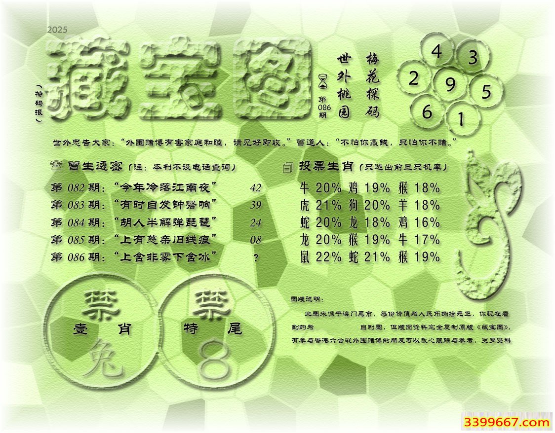 086期藏寶圖 新:白云子孙食不给 老:上含非雾下含冰 禁:兔 禁:8尾