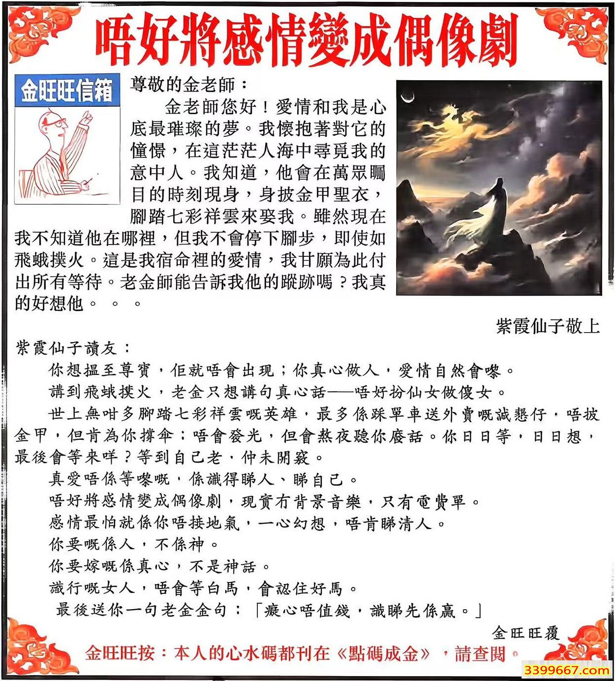 089期:金旺旺信箱彩民推荐→→《唔好將感情變成偶像劇》