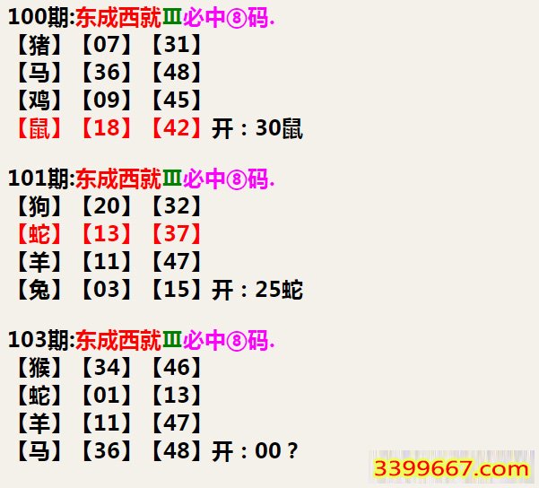 103期:东成西就Ⅲ必中⑧码