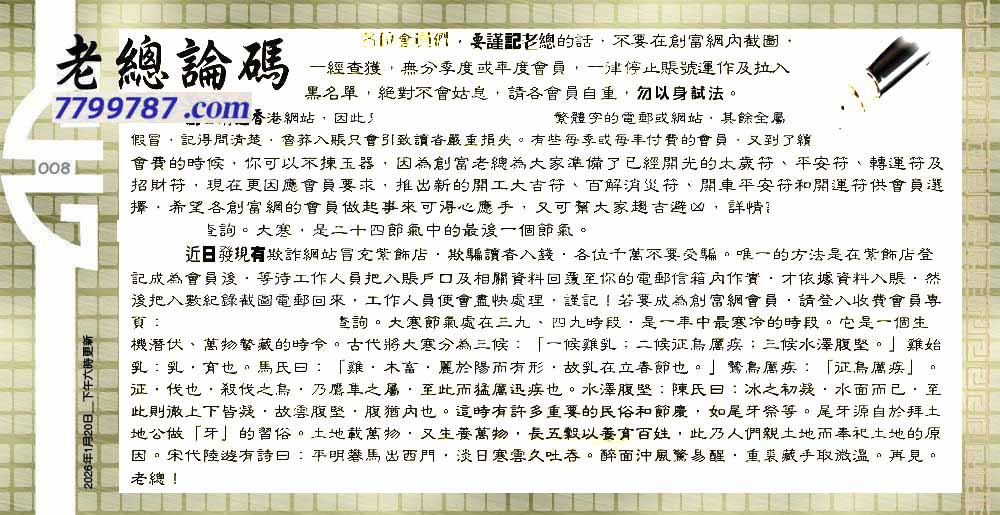 008期:六合皇金句/老总论码/萧公子/林大师/五行夺码/老总信箱截